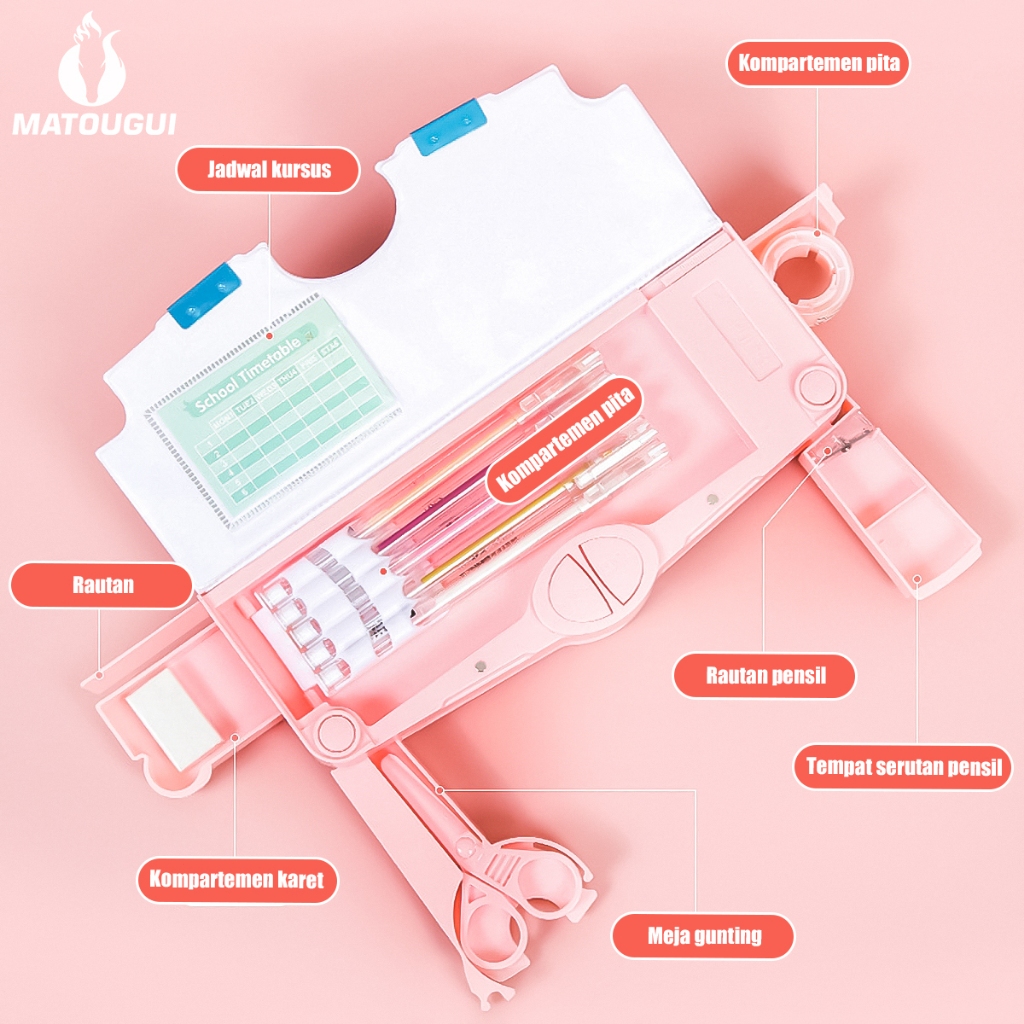 Matougui Kotak Pensil Multifungsi Lengkap Peruncing Gunting Isolasi Penghapus Penggaris
