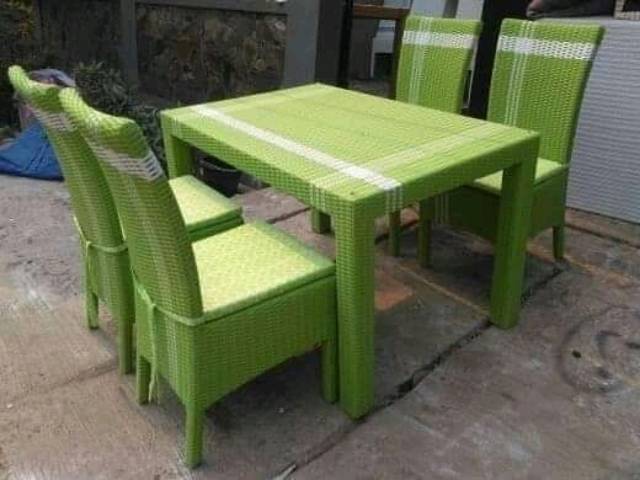 Ready stok Kursi makan rotan sintetis + kaca meja makan tempat makanan