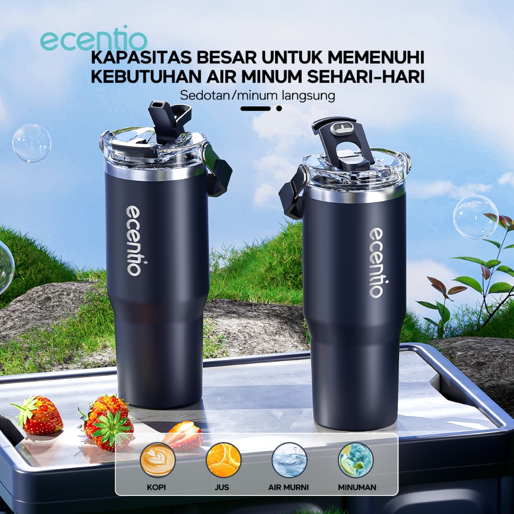 ecentio tumbler Stainless 900ml Portable Thermos Botol minum besar tas tumbler tahan panas dingin 24 jam lucu tumblr aes