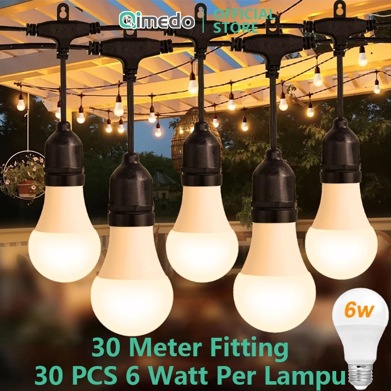 QIMEDO 30 Lampu Led 30 Meter Kabel Fitting 6Watt Kuning Bohlam Tahan Air Kafe Bola Kabel Tipe Updown