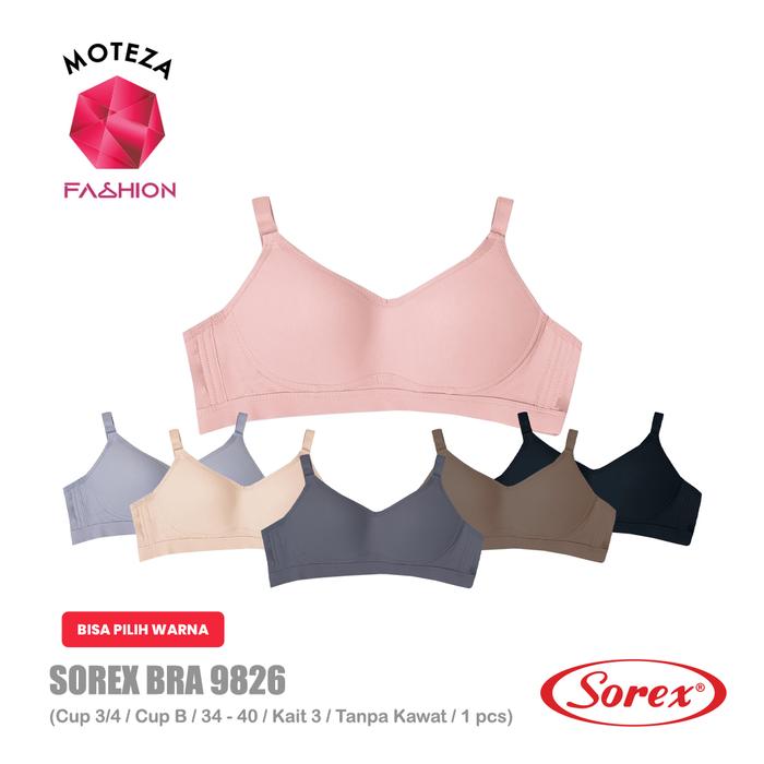 DIJAMIN ORI ! SOREX 9826 BRA BH BUSA SEDANG | CUP 3/4 CUP B | TANPA KAWAT | KAIT 3 | COMFY SERIES - ABU-ABU, 36 LARIS