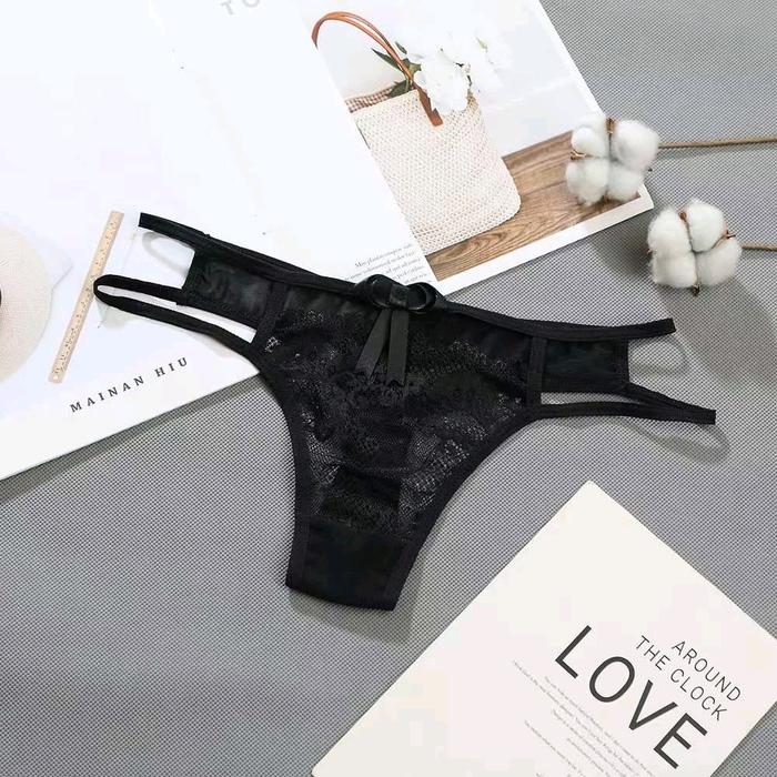 DIJAMIN ORI ! CELANA DALAM RENDA TRANSPARAN WANITA SEXY (225) DEWASA NYAMAN LINGERIE - HITAM, M LARIS