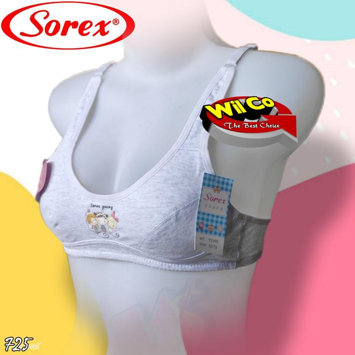 DIJAMIN ORI ! K725 (1-3 PCS) SOREX BRA / BH BUSA REMAJA TANPA KAWAT CUP A SIZE 32 - 36 DUA PENGAIT - ABU MUDA, 32 LARIS