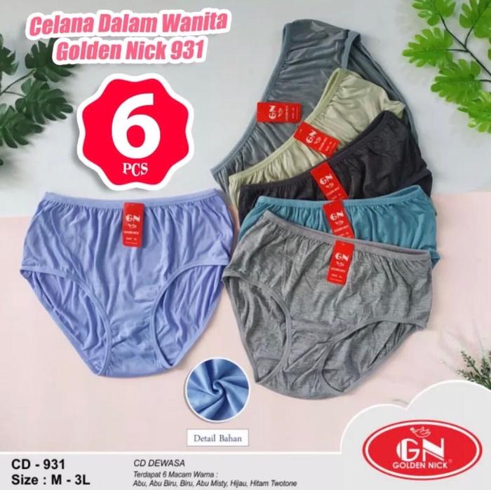 DIJAMIN ORI ! GOLDEN NICK CELANA DALAM WANITA NYAMAN 931 M | L | XL | XXL KARET LEMBUT CEWEK POLOS - M, 3 PCS LARIS