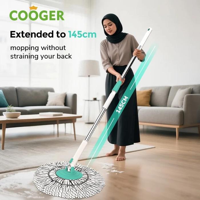 COOGER Pel Putar Twist Mop Alat Pel Peras Otomatis Daya Serap Tinggi Mudah Digunakan Gagang Stainless Steel - Tanpa Kep