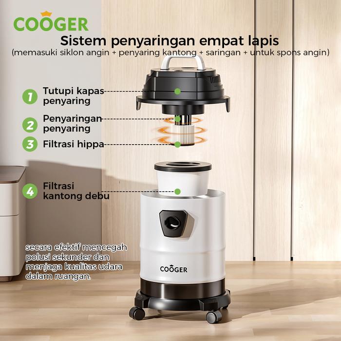 COOGER Vacuum Cleaner Wet Dry 18L Dengan 10 Nozzle Membersihkan Rumah dan Bulu Hewan Peliharaan Penyedot Debu Serbaguna