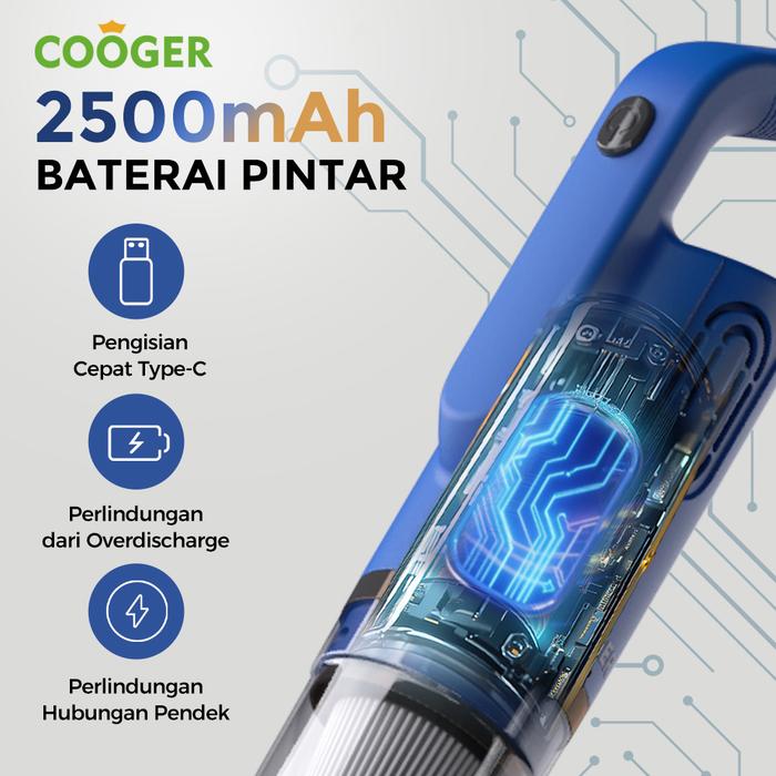 COOGER Vacuum HS69 Pro Vacuum Lantai Penyedot Debu Multifungsi Dengan Gagang Lipat Daya Hisap 6000Pa Portable
