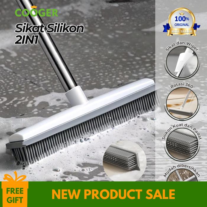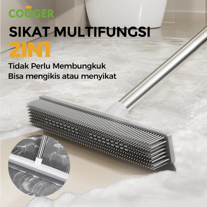COOGER Sikat Lantai Silikon 2in1 Sikat Kamar Mandi Sikat Lantai Multifungsi Gagang Panjang Stainless Steel