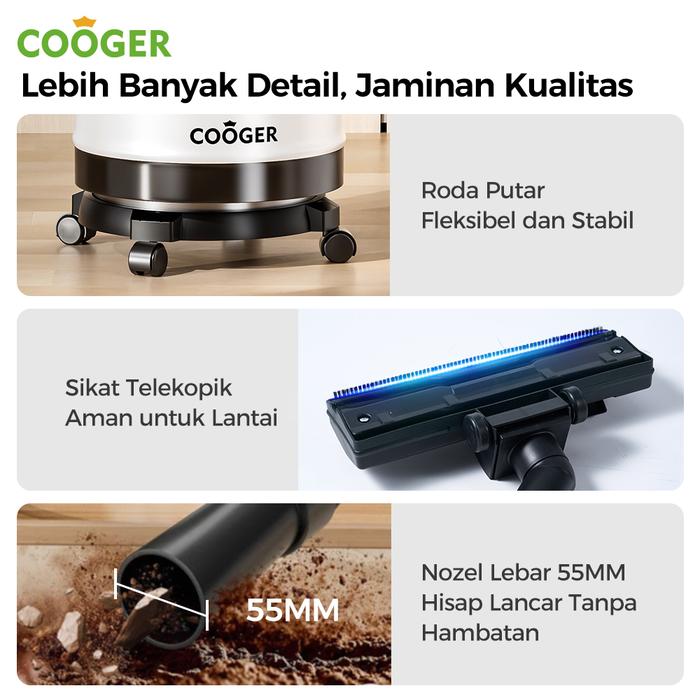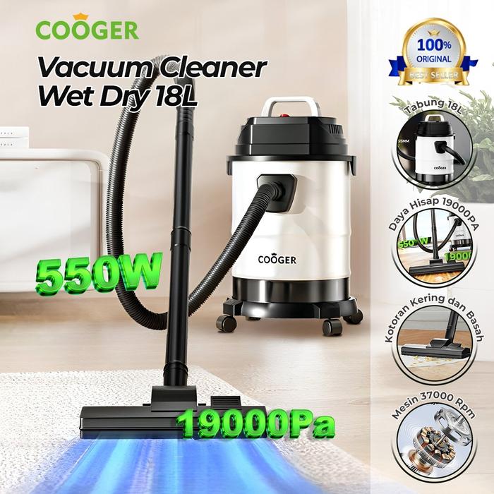 COOGER Vacuum Mobil Vacuum Wet Dry Membersihkan Mobil dan Rumah Penyedot Debu Serbaguna Anti Karat Kapasitas 18L