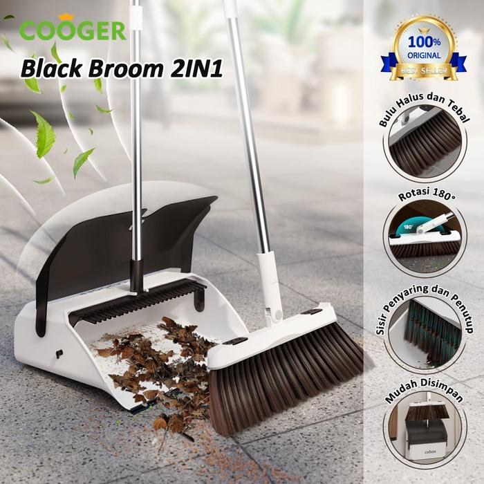 COOGER Sapu Set Pengki Lipat Alat Pembersih Lantai Dengan Sisir Pembersih Anti Karat Set Sapu Pengki Lipat