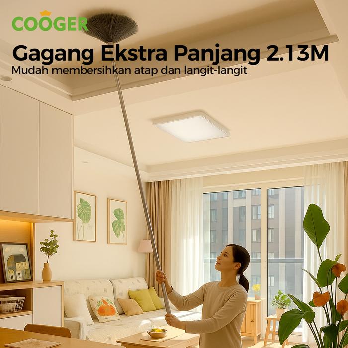 COOGER Sapu Plafon Dengan Gagang Stainless Steel Ringan dan Panjang Sapu Sawang Sarang Laba Laba Sapu Langit Atap Multif