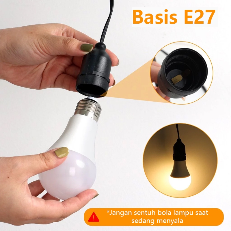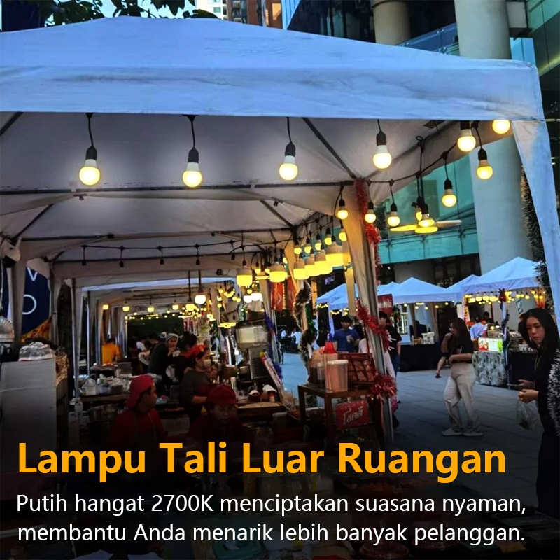 QIMEDO 30 Lampu Led 30 Meter Kabel Fitting 6Watt Kuning Bohlam Tahan Air Kafe Bola Kabel Tipe Updown