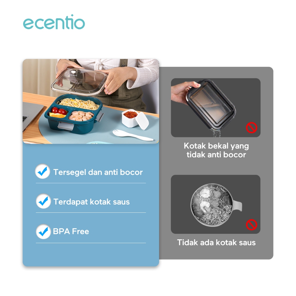 【Produk Andalan ecentio Surabaya】ecentio lunch box anti tumpah tumpah 3 grid 1100ml Kotak makan wadah bekal anti tumpah