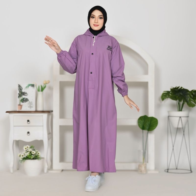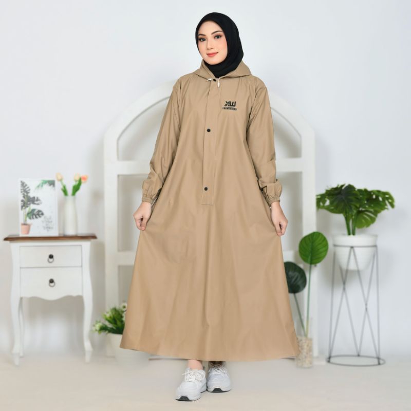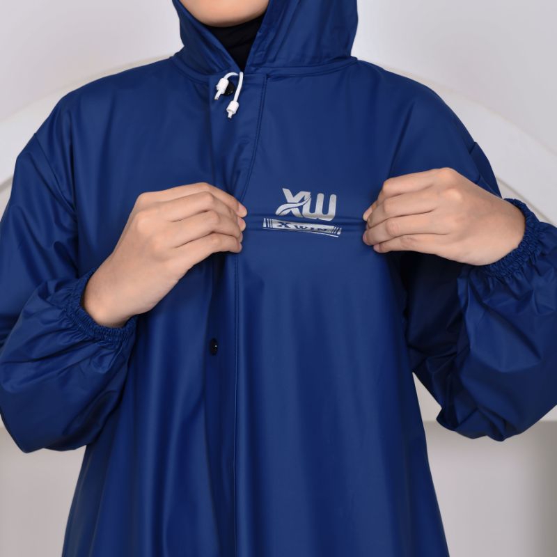 Xwin Raincoat Wanita, Jas Hujan Gamis Syar'i Berbahan PVC Tebal Kuat Lentur Anti Rembes Waterproof Tahan air dan Kedap Air / Mantel Hujan Muslimah ukuran M L XL Jumbo Tipe Jubah , baju dan Rok