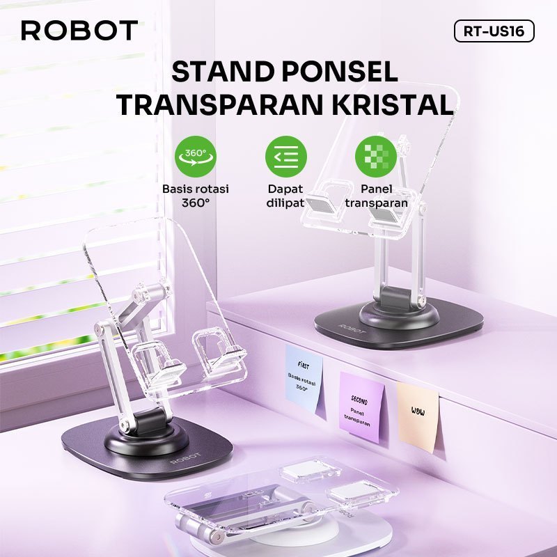 ROBOT Phone Holder Universal Transparent Stand Holder RT-US16 Tablet Holder Adjustable 360° Original - Garansi 1 Tahun