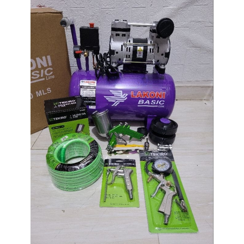 Kompresor 25Liter LAKONI BASIC 550MLS HIGH SPEED Paket TEKIRO Isian Angin Dan Cat - Dpm96