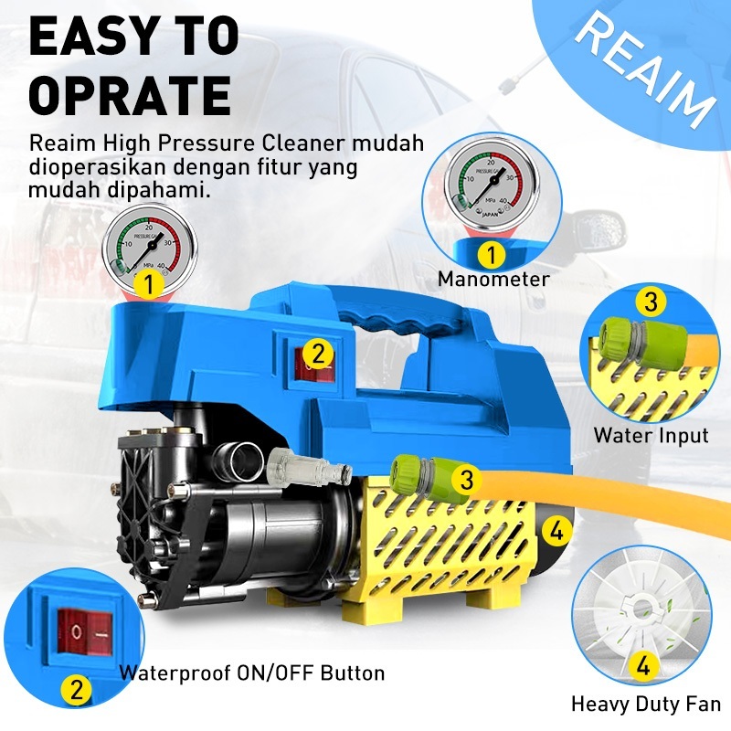 Reaim Jet Cleaner 600W 350Bar Mesin Cuci Motor Jet Cleaner Mesin Cuci Mobil Alat Cuci Motor - Dpm96