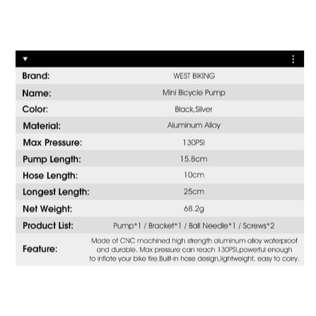 West Biking Yp0711136 Pompa Mini Pump Ban Sepeda Motor Selang 130 Psi