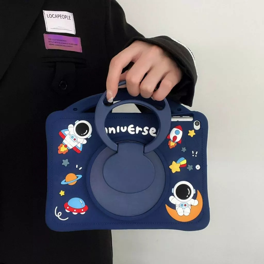 Xiaomi Redmi Pad 2 2025 Silikon Case Motif Anak Kid Tali Lanyard Selempang Unik Astronot 3D Ring Handle Standing