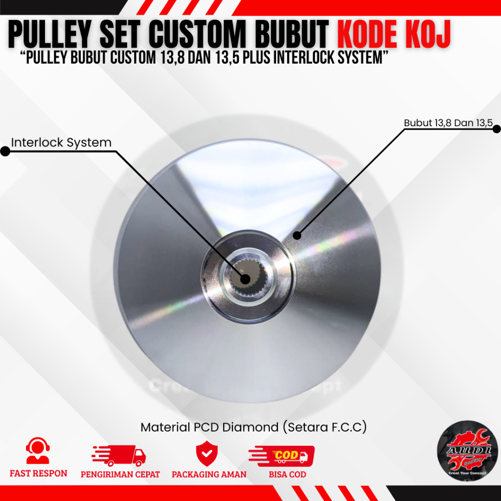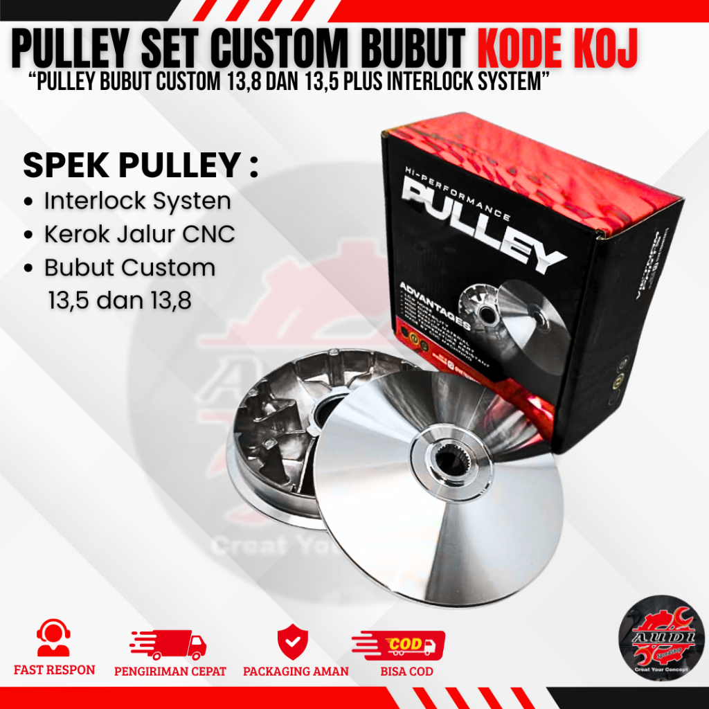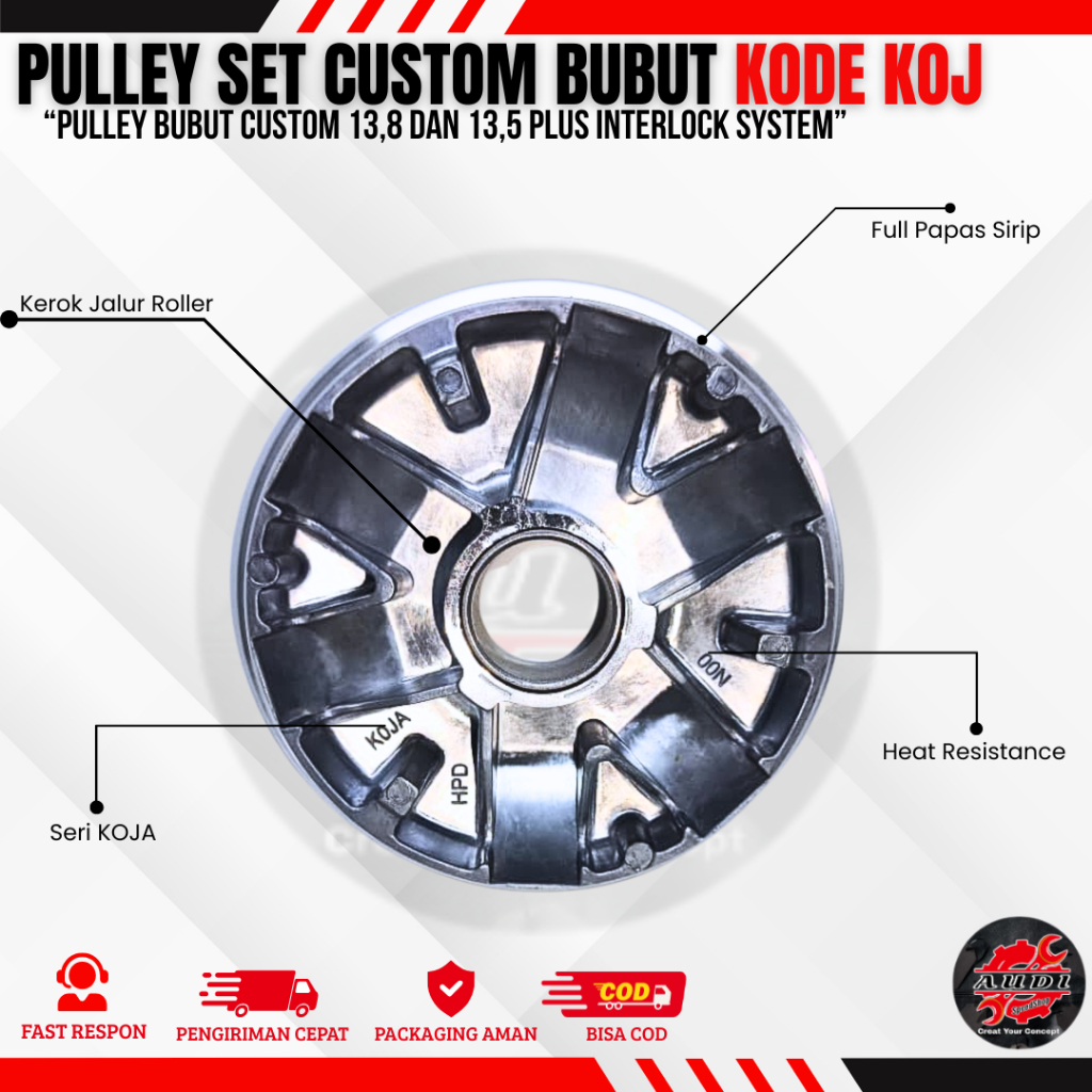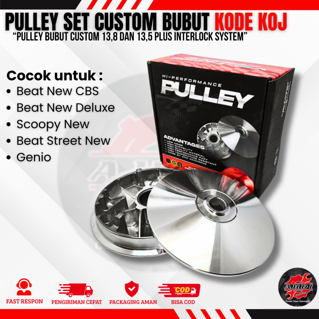 PULLEY BUBUT 13,8/13,5 DERAJAT BEAT NEW DELUXE SCOOPY NEW GENIO PULLEY SET+VANBELT KOJ PULLEY CUSTOM