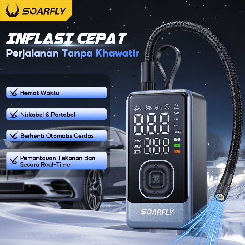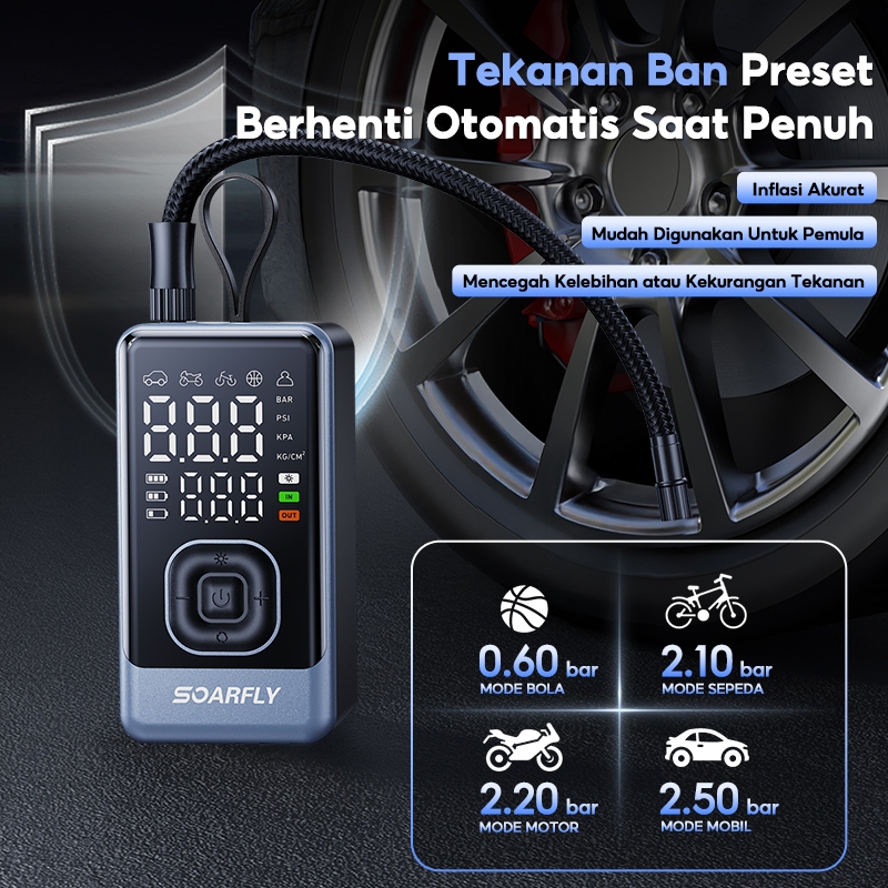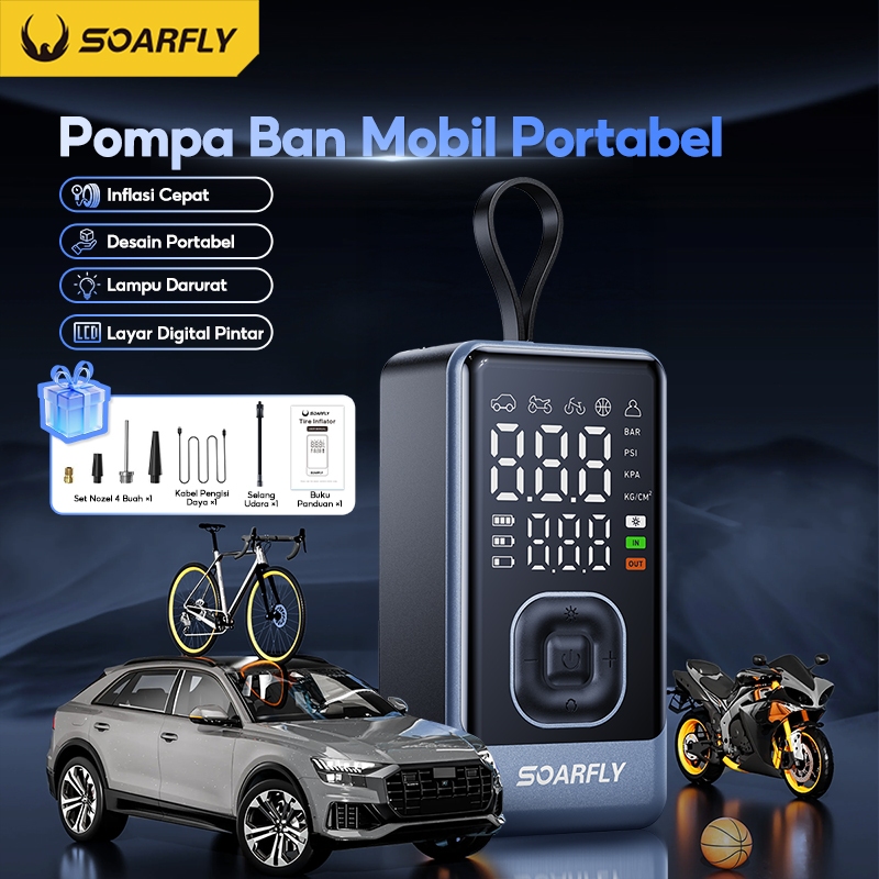 Soarfly Pompa Elektrik 3 In 1 Ban Portable Multifungsi Inflation Pump Bisa Pompa Ban Motor Dan Mobil , Powerbank &