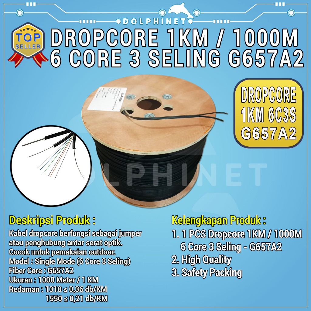 Kabel Dropcore Fiber Optic 6 Core 3 Seling 1KM Best Quality Core G657A2 Premium Kabel Dropcore Fiber Optic 1000 Meter 10