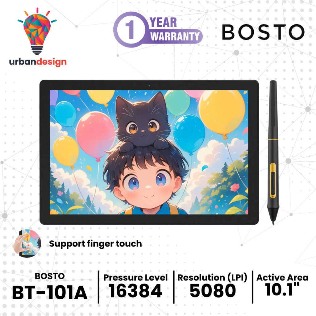 BOSTO BT-101A Pen Display Tablet Touchscreen 10.1 Inci – Stylus Tanpa Baterai, Layar IPS, 16K Tekanan, Kompatibel Windows
