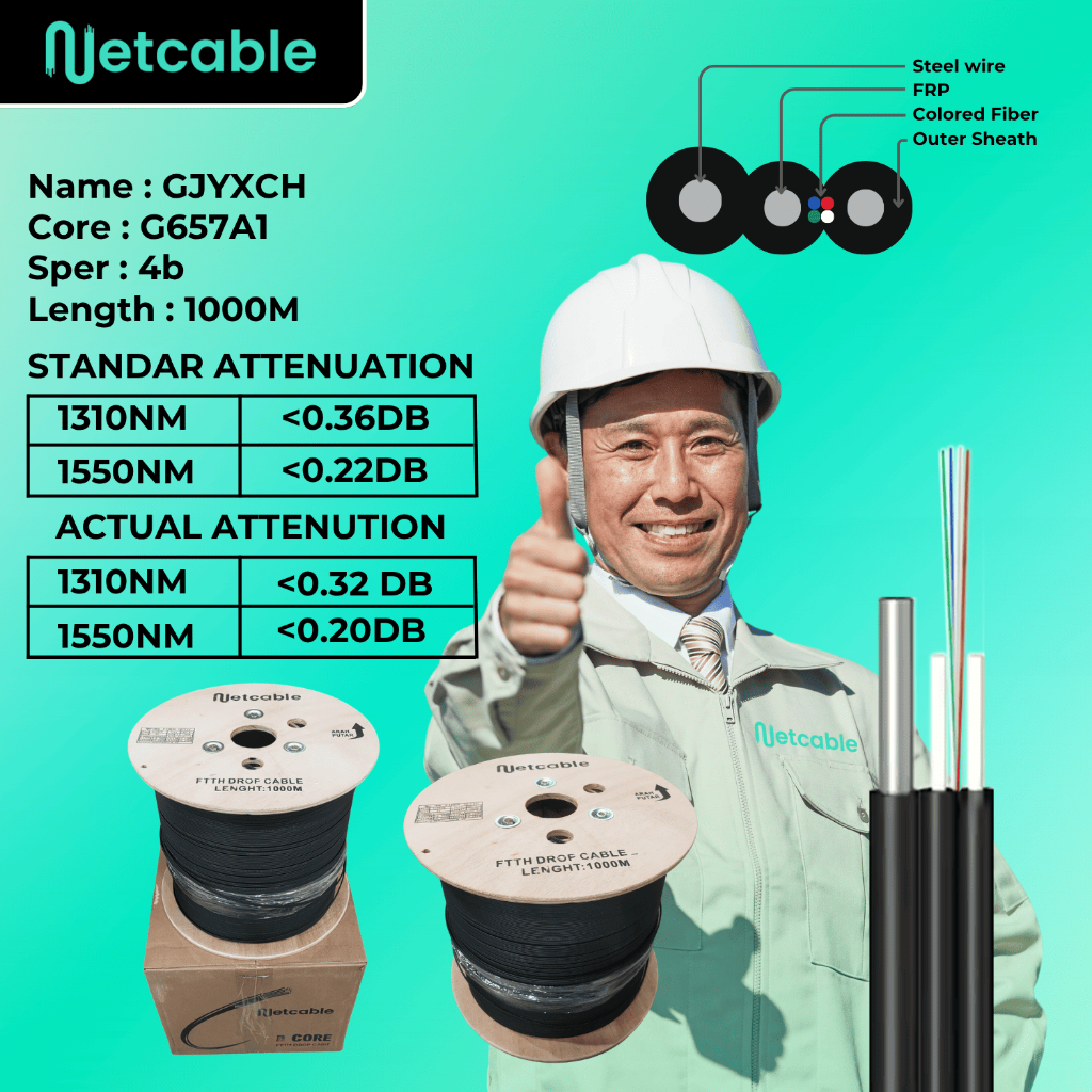 NETCABLE Kabel Fiber Optik Dropcore 4 Core 3 Seling 1km | Stabil Jaringan Kuat FTTH