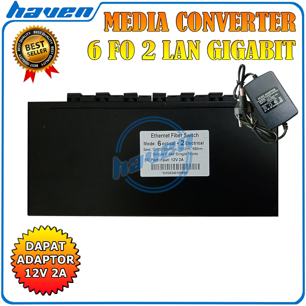 Media Converter 6 FO 2 LAN 6 SC 2 RJ45 Gigabit 1000 Mbps Body Casing Switch Fiber Optic Optik HTB 6 Port FO 2 Port LAN E