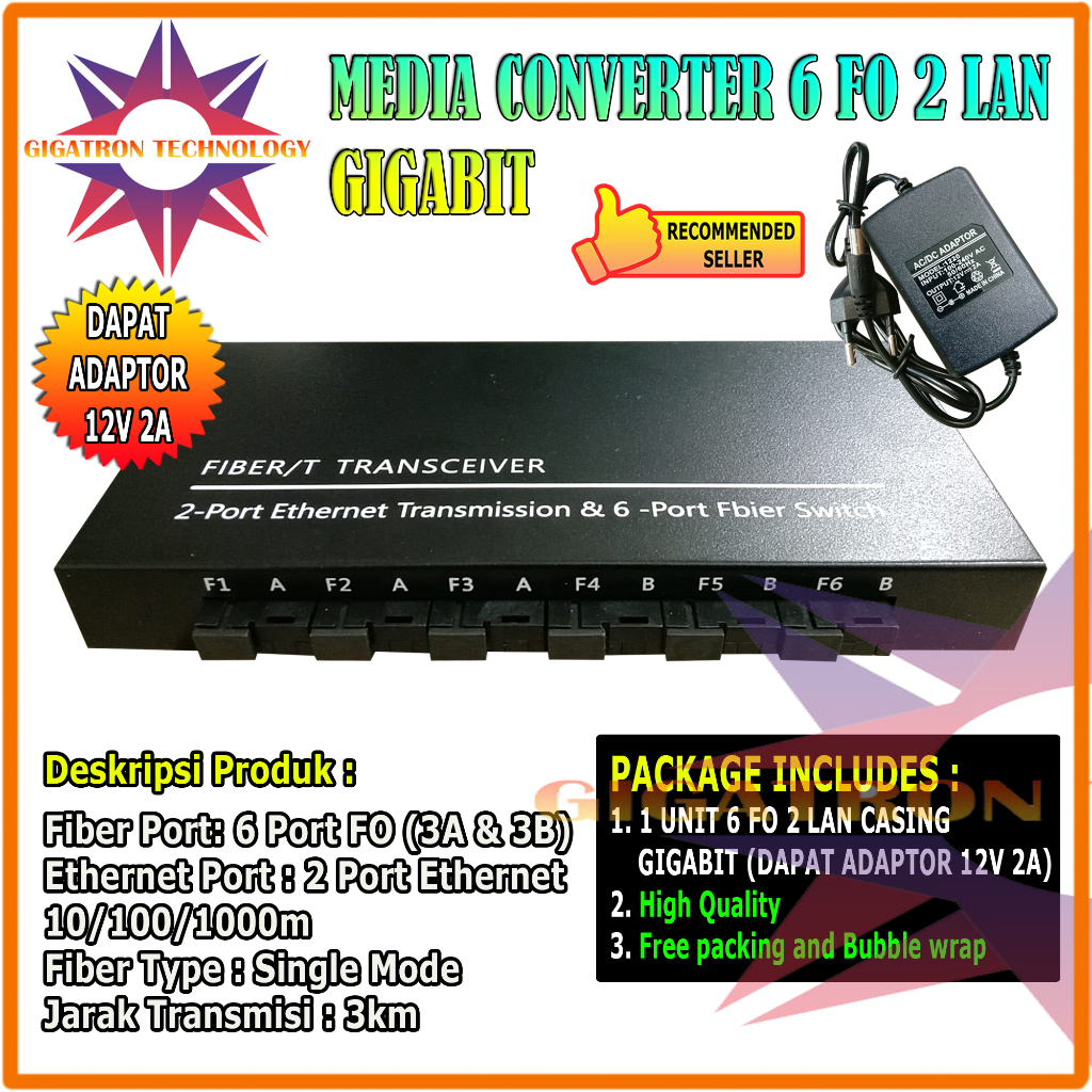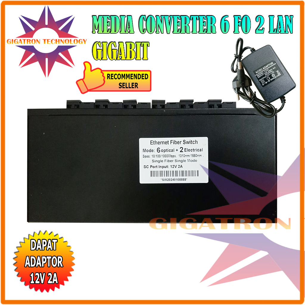 Media Converter 6 FO 2 LAN 6 SC 2 RJ45 Gigabit 1000 Mbps Body Casing Switch Fiber Optic Optik HTB 6 Port FO 2 Port LAN E