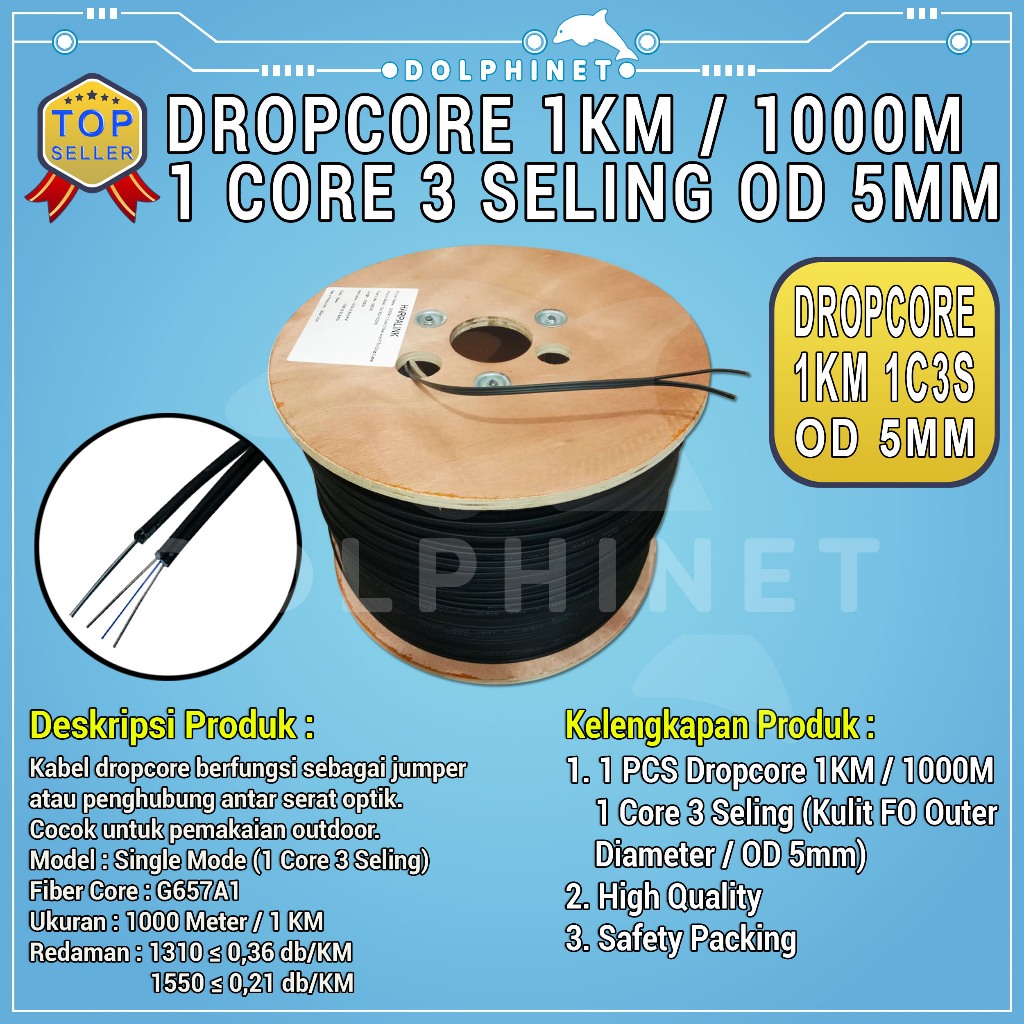 Kabel Dropcore Fiber Optic 6 Core 3 Seling 1KM Best Quality Core G657A2 Premium Kabel Dropcore Fiber Optic 1000 Meter 10