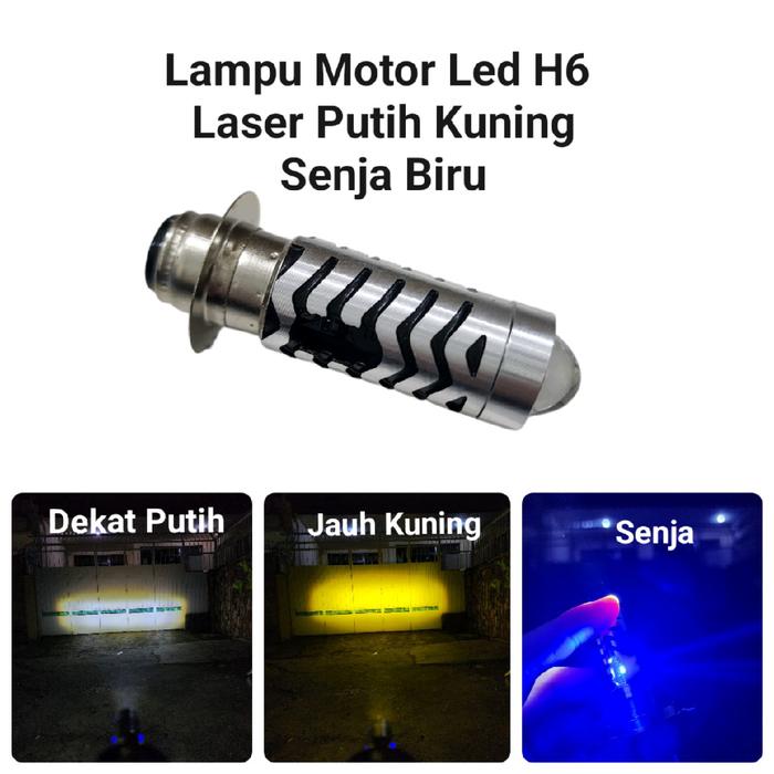 MEGA SALE LAMPU UTAMA MOTOR BEBEK MATIC LASER LED PUTIH KUNING UNIVERSAL H6 DEPAN - PUTIH-KUNING H6 SENJA BEST