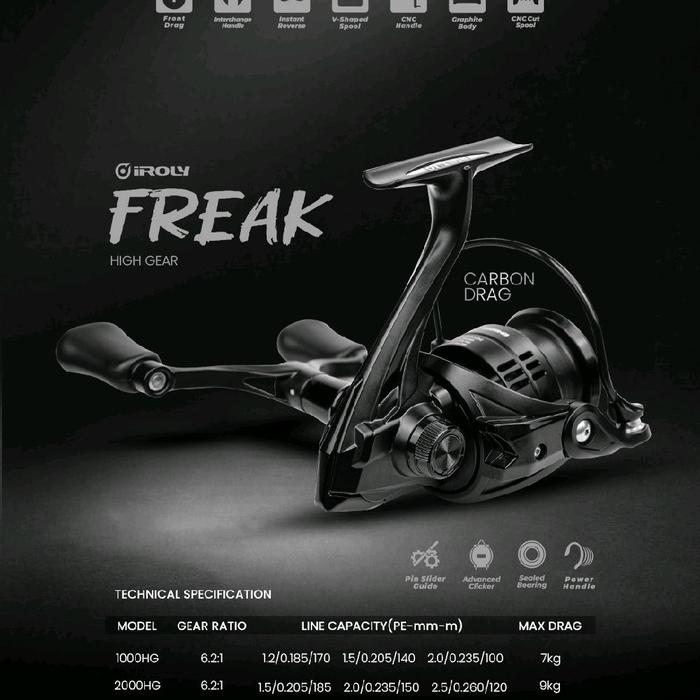 REEL IROLY FREAK TWIN HANDEL 6+1BB (POWER HANDLE) - 1000HG