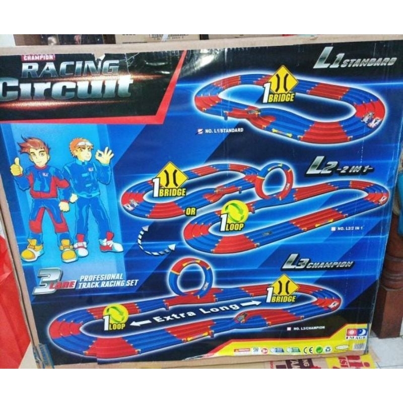 Track tamia 3 jalur racing circuit L1 standard dilengkapi dengan pemindah jalur interchange atau loop L1 dan L2