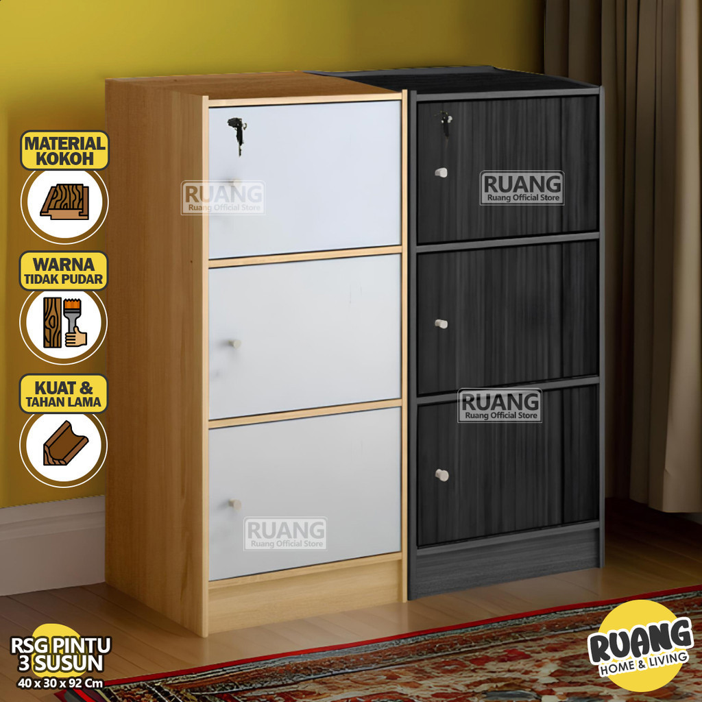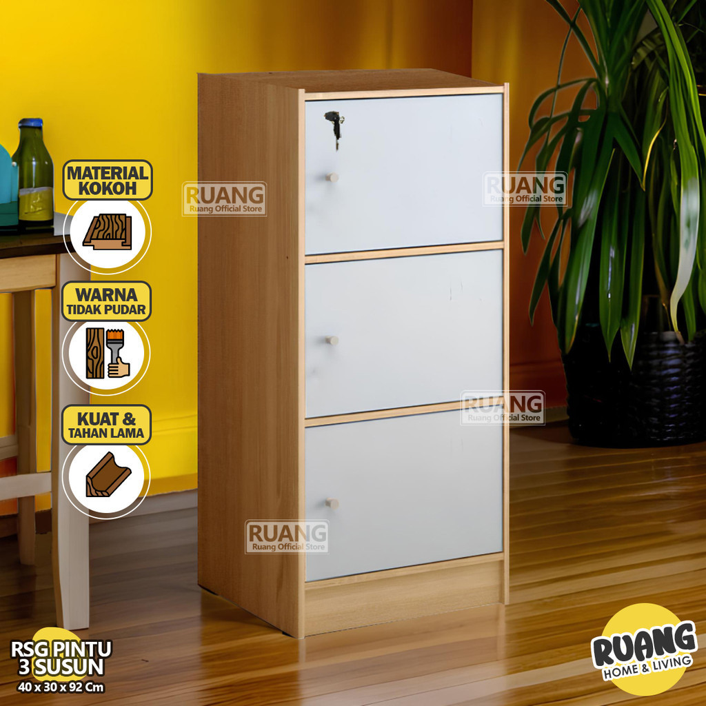 RSG PINTU 3 SUSUN - Rak Serbaguba Dengan Pintu Lemari Book Rack 3 Susun Kayu Murah Lemari Buku