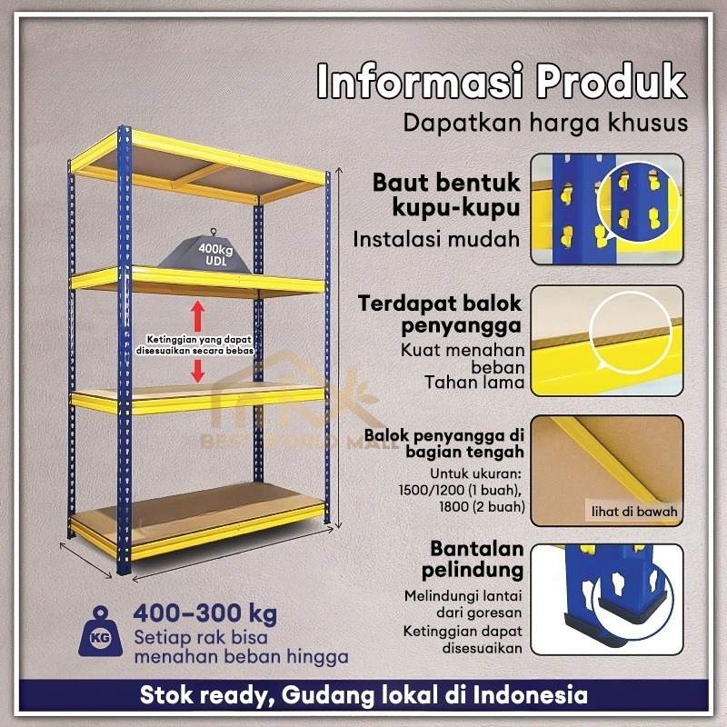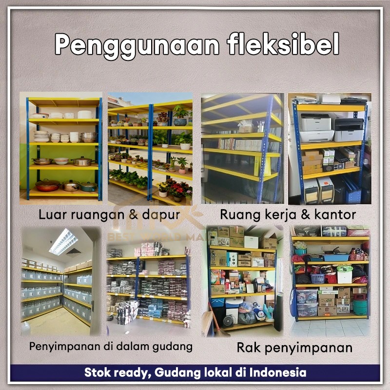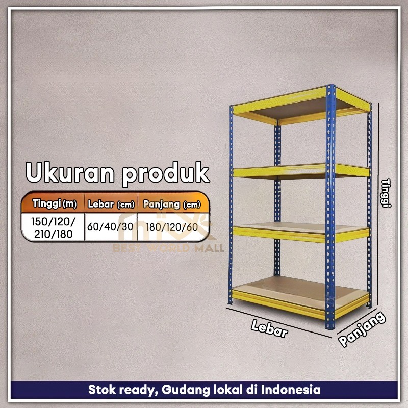 Rak Gudang Mudah Dipasang Rak Besi Serbaa Rak Dapur Serbaa Rak Besi Kokoh Bantalan Beban 800kg