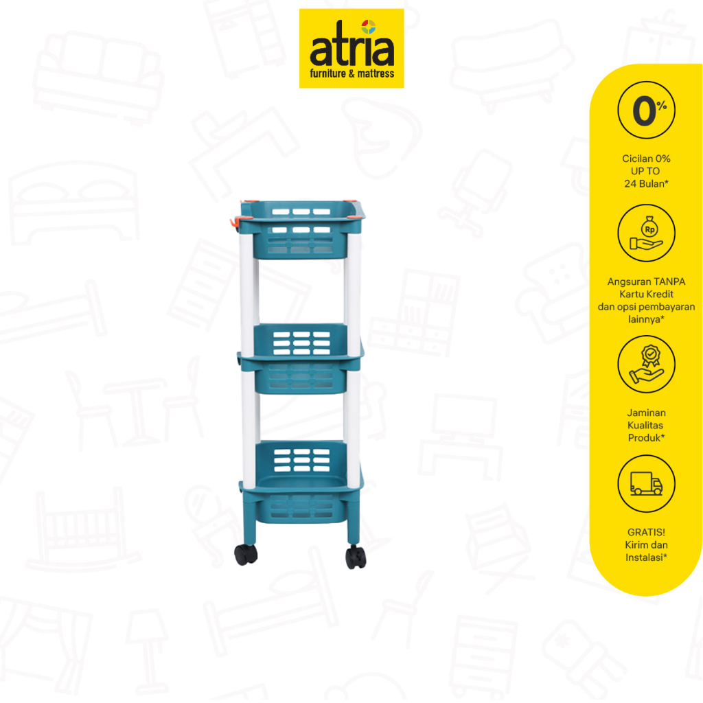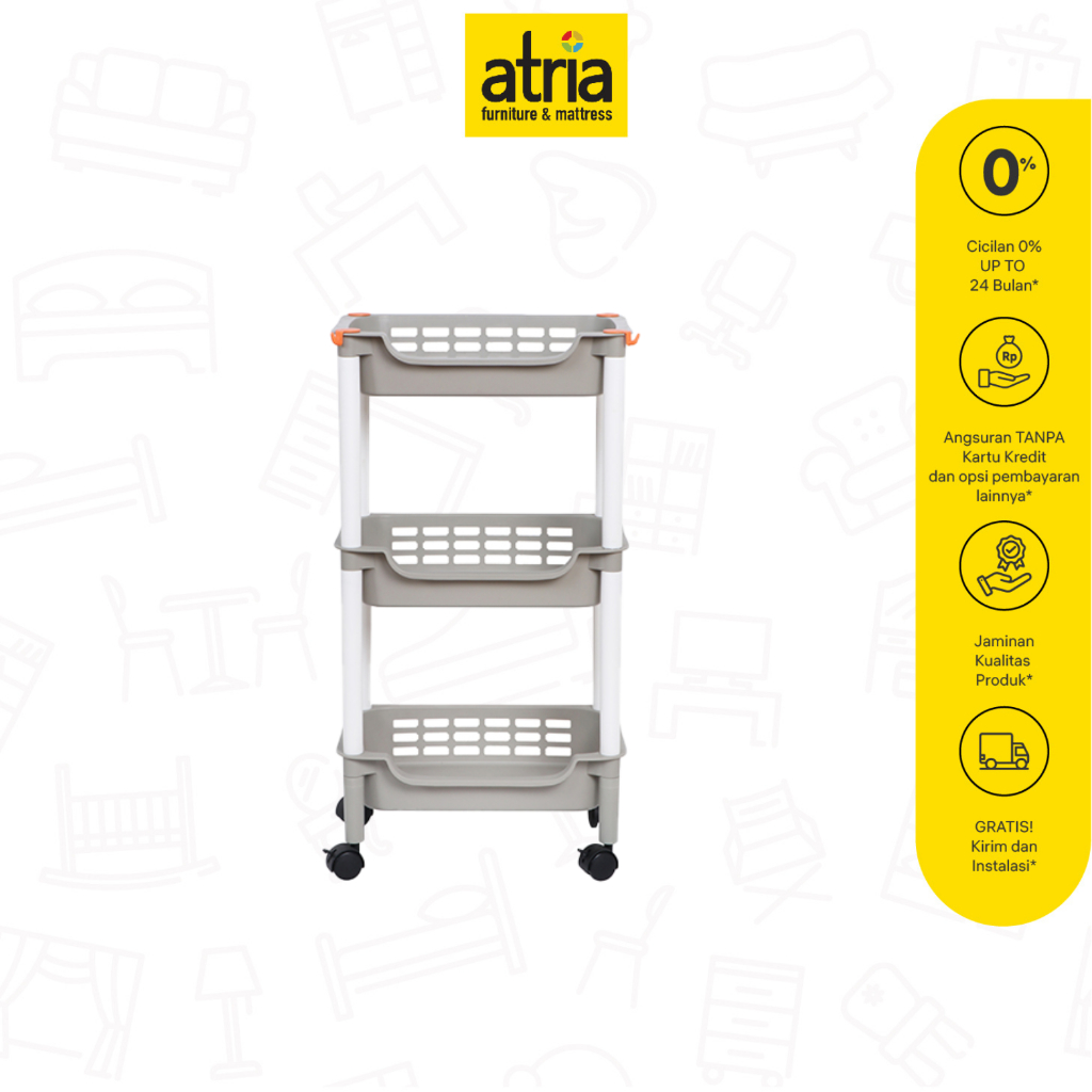 Atria Jen 3 Layer Foldable Rak Penyimpanan Dengan Roda 39.5 x 26.5 x 74 cm