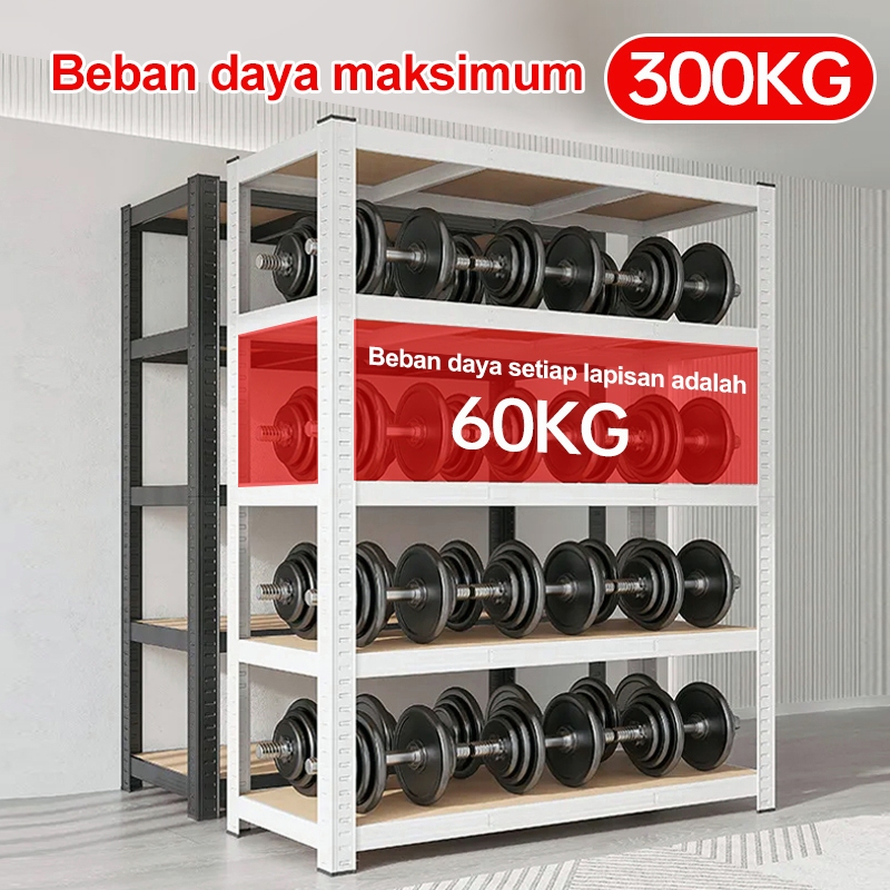 BMZAR Rak Besi Siku 5 Susun Rak Susun Besi Rak Gudang Panel Kayu Solid + Rangka Baja Tebal 3/4/5/6 Lsan