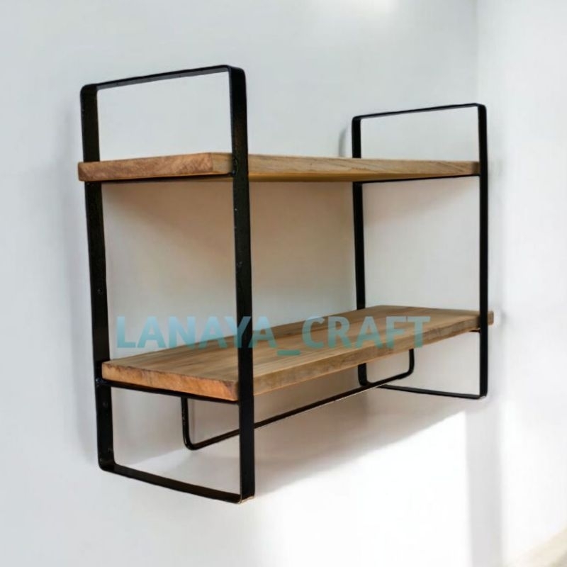 Rak Dinding 2 Susun Lebar 20cm - Tempat Penyimpanan Serbaa Bahan Kayu Model Vintage Aeshtetik