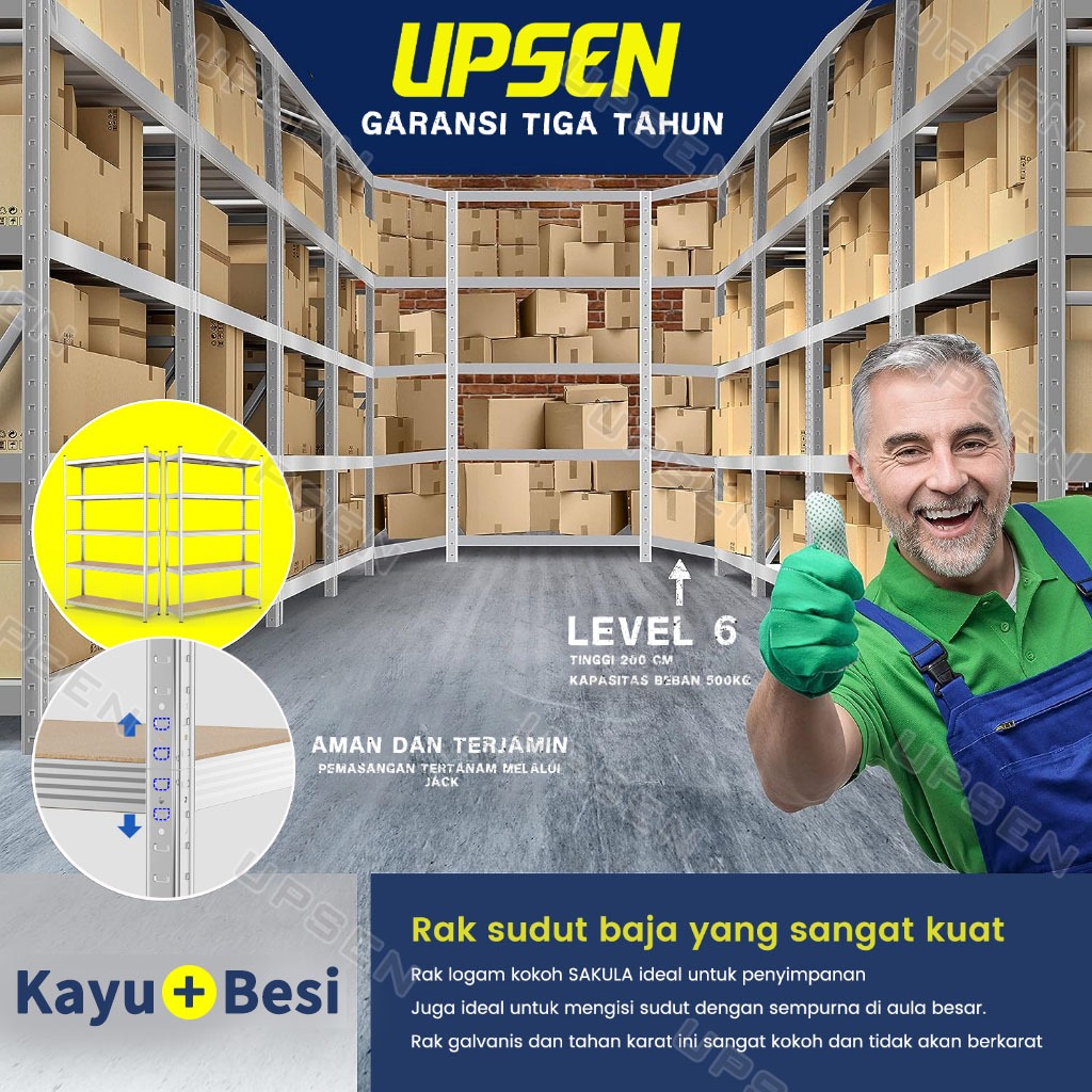 Rak Besi Siku 6 susun 40x120x200cm serbaa rak Besi boltless Gudang shelves Gratis kaki karet