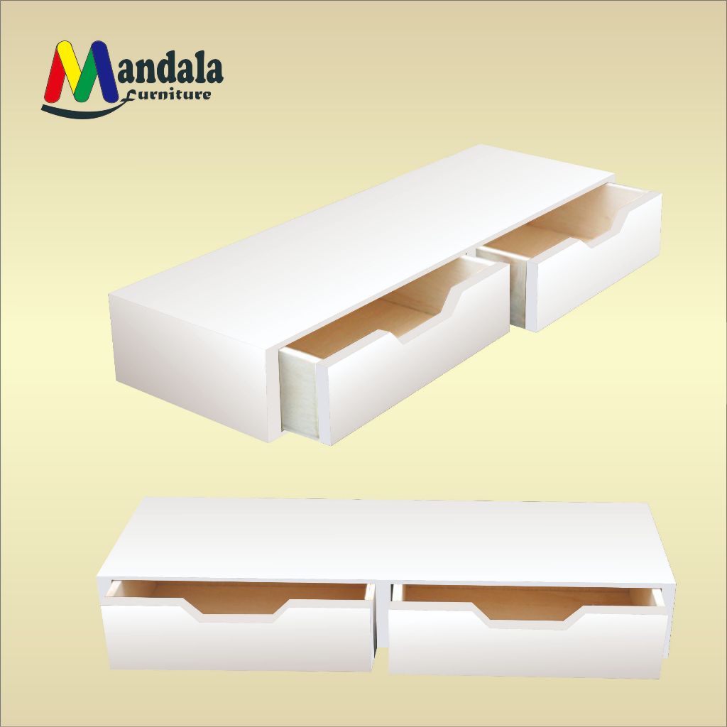 RL 008 Rak Dinding Laci Melayang Gantung Tempel 60x20cm 2 Penyimpanan Slot W Ambalan Dekorasi Minimalis/ Rak Laci Serbaa