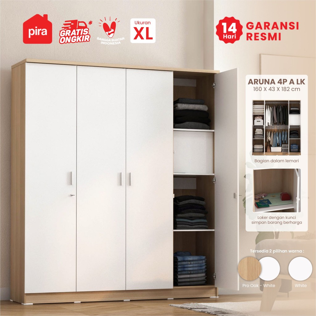 PIRA METROPOLIS OX - ARUNA 4P A LK Lemari Pakaian 4 Pintu / Lemari Baju dengan Loker Penyimpanan