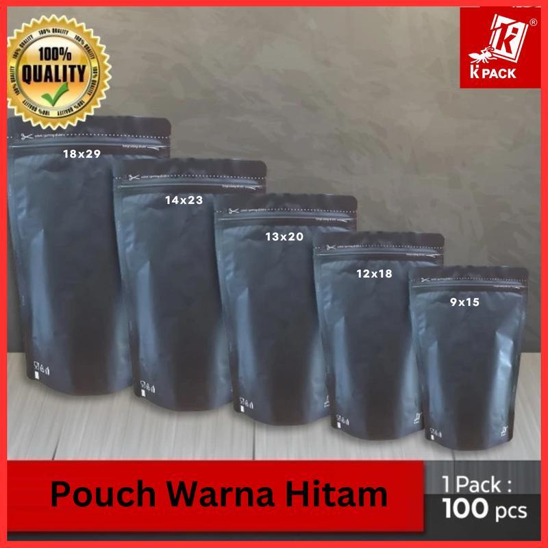 (100 pcs) Standing Pouch foil Hitam KPack 9x15 12x18 13x20 14x23 18x29 cm