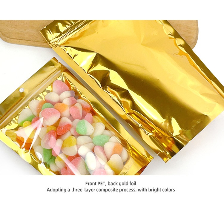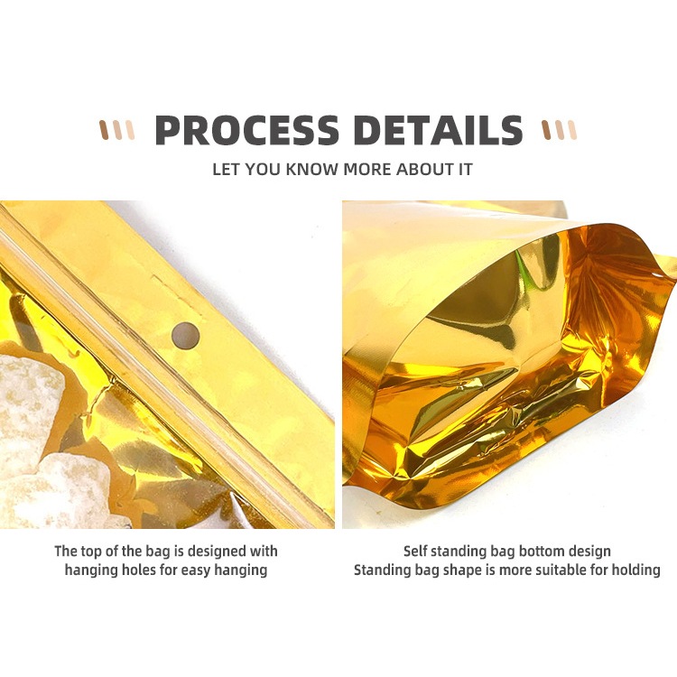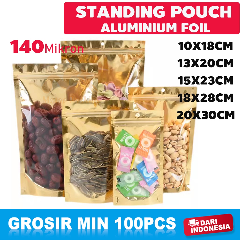 100PCS Standing Pouch Aluminium Foil Emas Plastik Klip Ziplock kemasan Makanan 160Micron 10x18cm/13x20cm/15x23cm/18x28cm