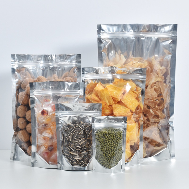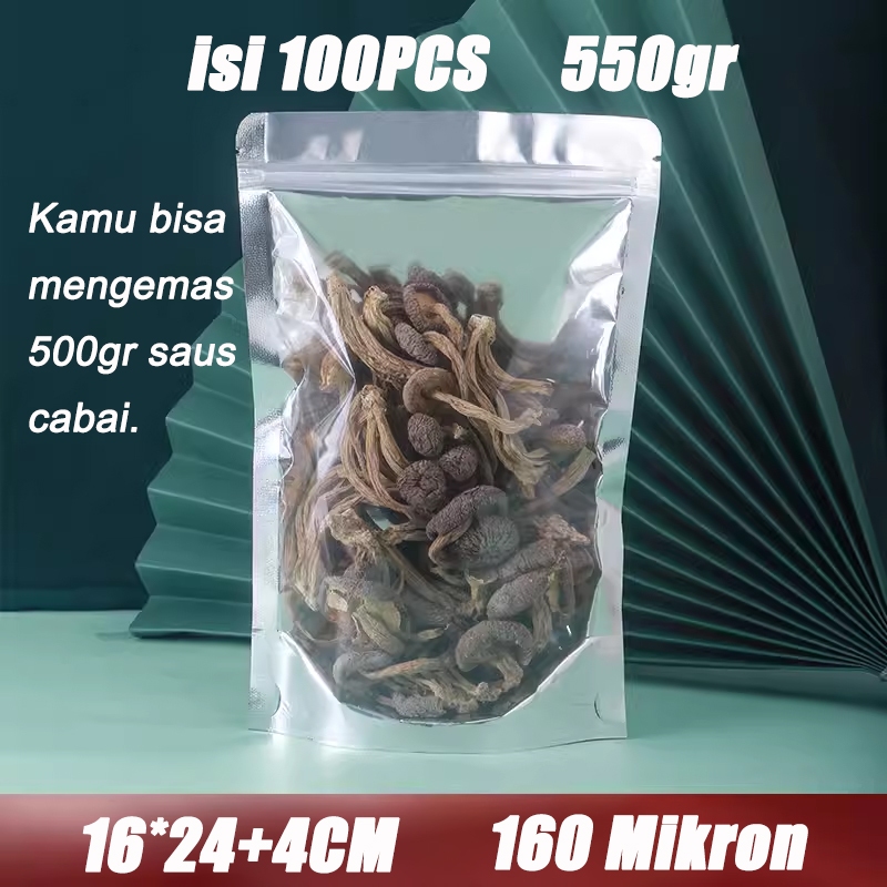 100PCS Standing Pouch 16x24cm Alumunium Foil Full Plastik Klip Ziplock Sealer Kemasan Makanan Super Silver Standing Pouc