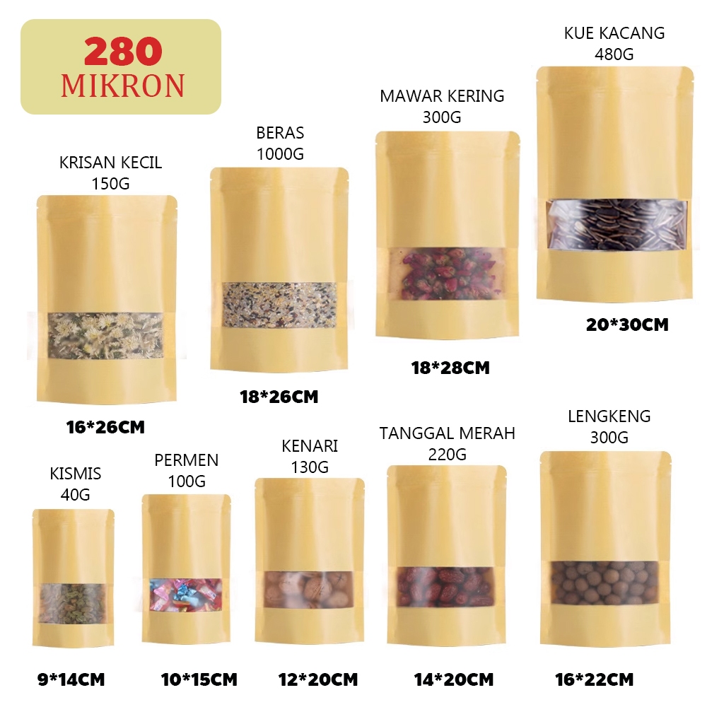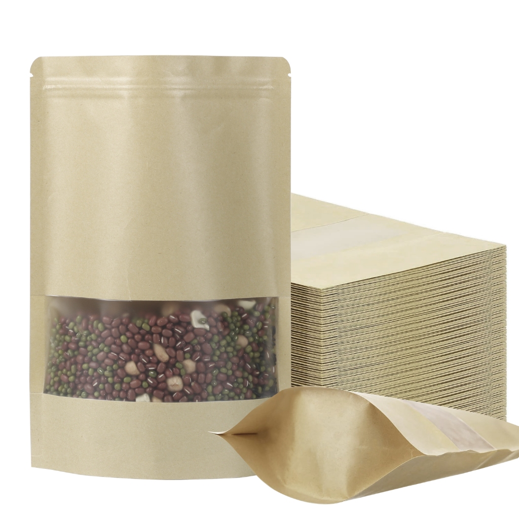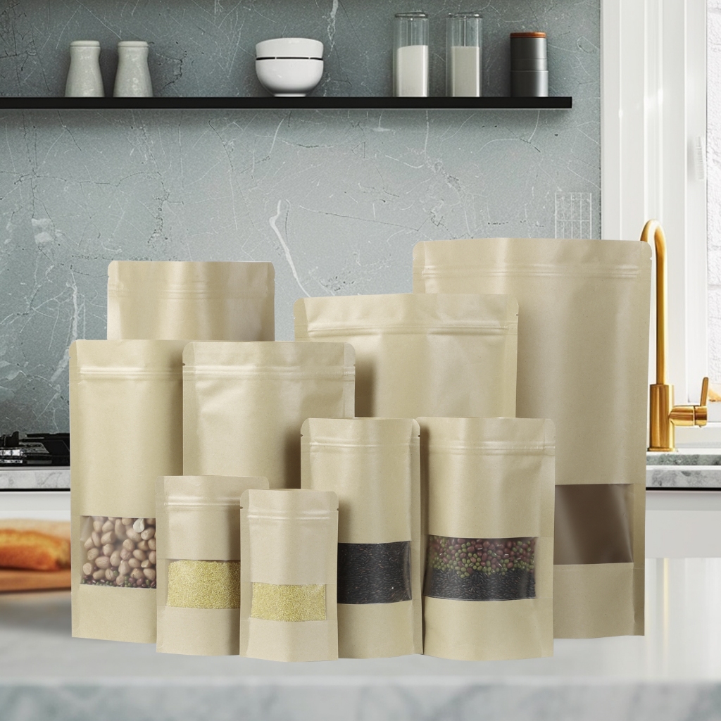 100PCS Paper Ziplcok Food Packing STANDING POUCH KRAFT WINDOW Plastik Klip Makanan Kemasan Snack Ziplock Food Grade Zipp