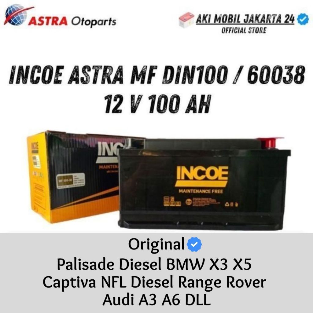 Aki Mobil Bmw X3, X5, Z4 Din 100 / 60044 / 60038 Incoe Mf Astra Kering 100 Ah
