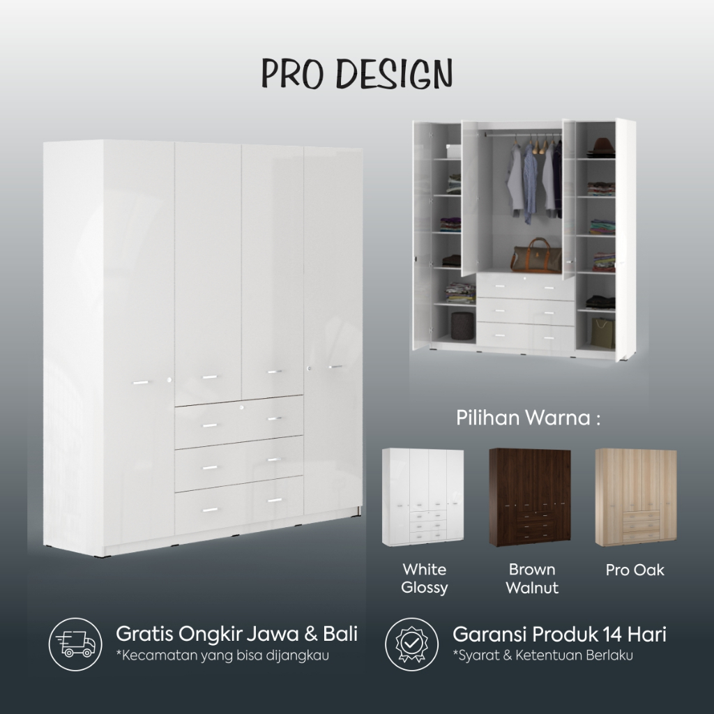 Pro Design Belvis BLVWD 190 Lemari Pakaian 4 Pintu