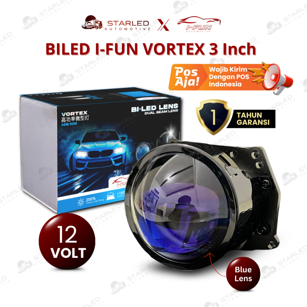 Lampu Biled I-Fun 3 Inch Vortex 12 Volt 45/55 Watt Blue Lens Lampu Depan Kendaraan Motor Mobil 12V Lampu Projie Car Moto