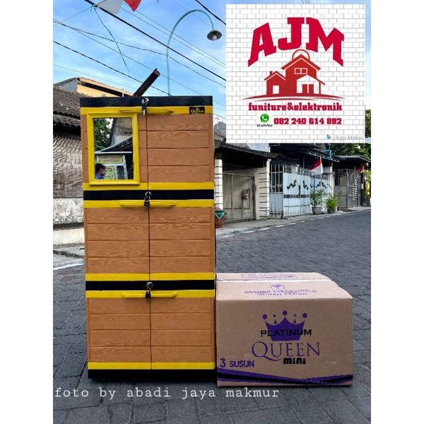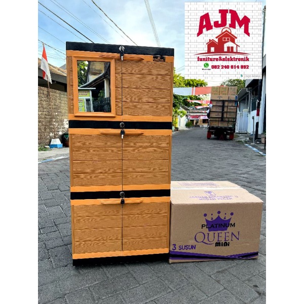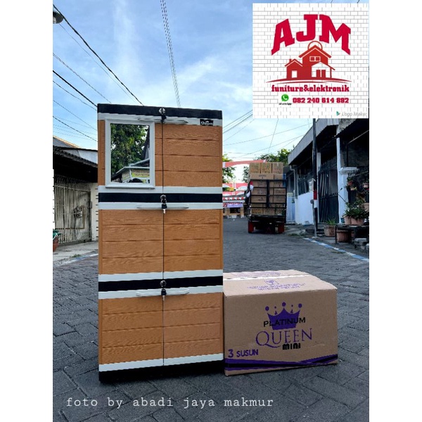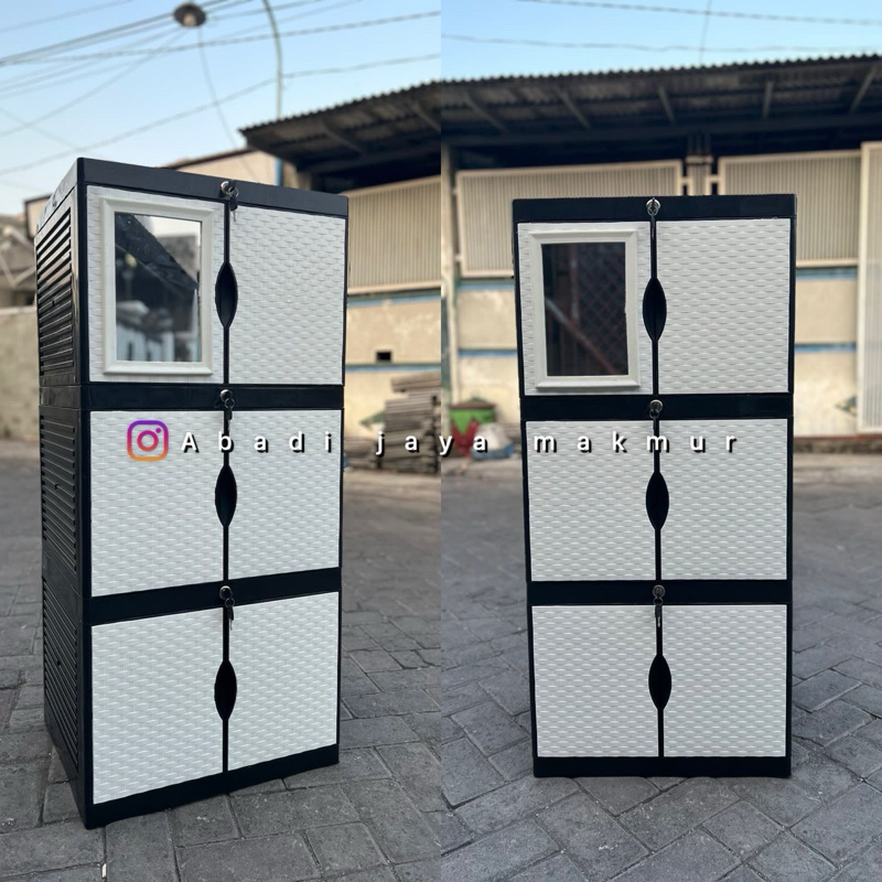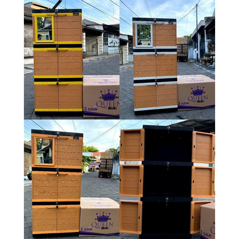 lemari pakaian plastik new susun 3 platinum / lemari plastik murah / lemari plastik kaca